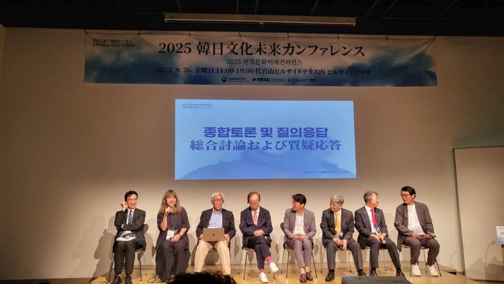 またそれらの事業の締めくくりとして、9月26日には代官山のヒルサイドプラザで国際シンポジウム「韓日文化未来カンファレンス−文化芸術で地域をつなぐ」(主催:釜山文化財団)が開催され、「芸術が都市を動かすとき」のテーマでBankART代表の細淵が登壇し、横浜市と協働してきた20年間の創造都市の実績を振り返り、現在の活動や今後の展望まで語らせていただきました。2010年から継続している「続・朝鮮通信使」をはじめ釜山文化財団とのさまざまな協力事業も紹介し、これらがまさに「信(よしみ)を通わ」し、「縁を繋いでいる」と云うに相応しいプロジェクトであることを、あらためて紹介させていただきました。